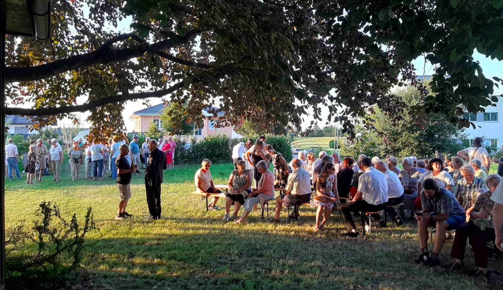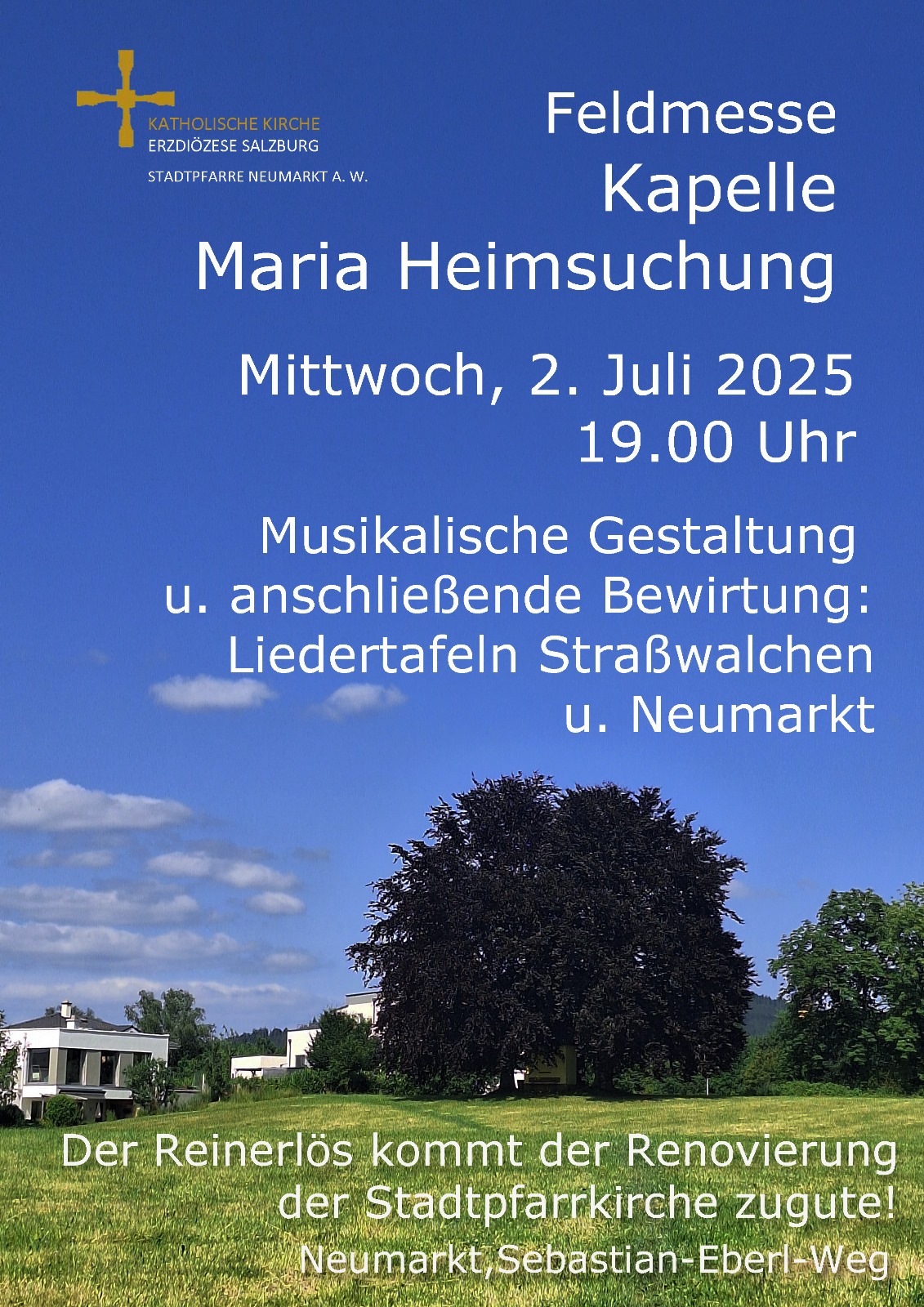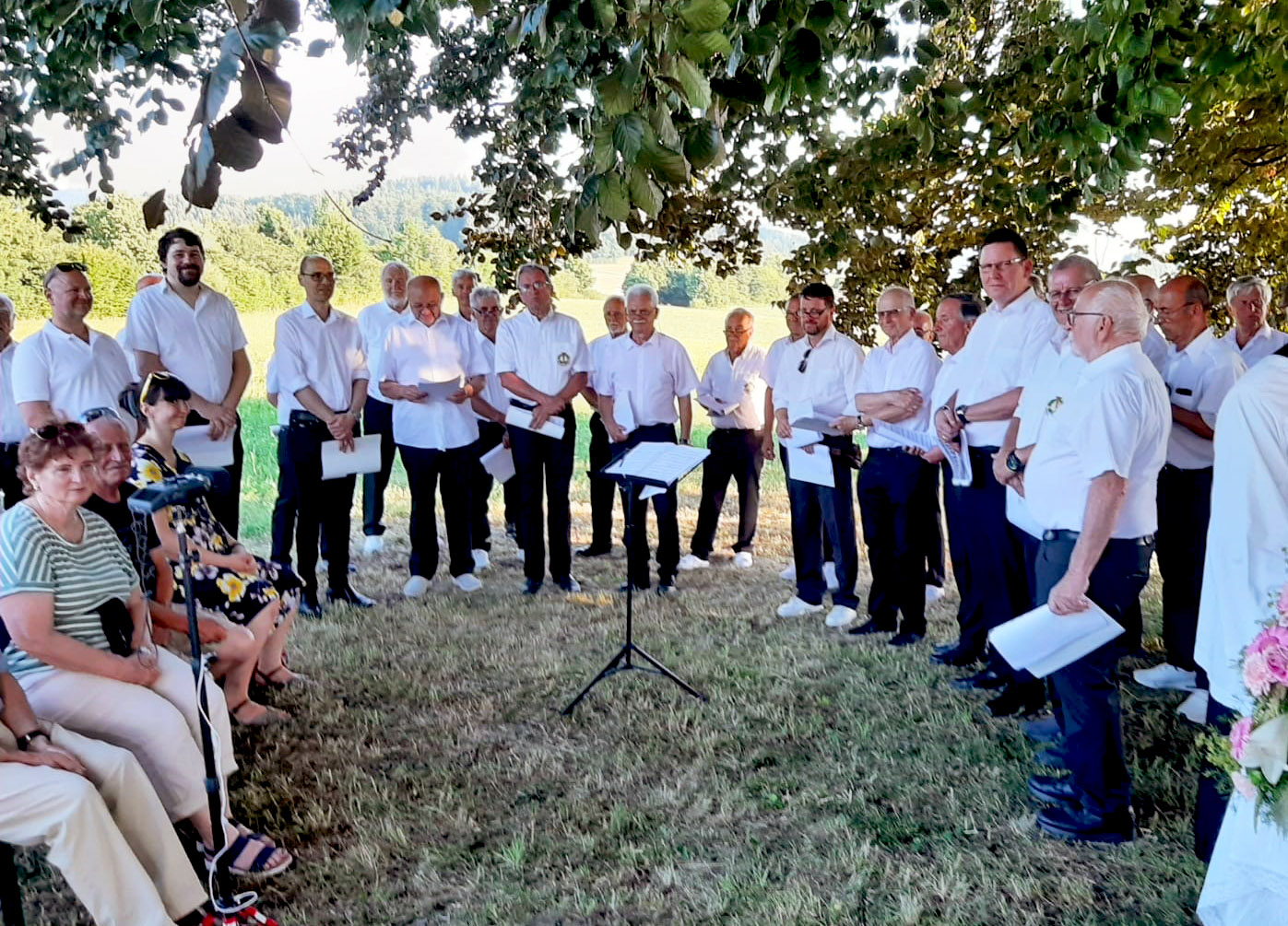 Die Chorgemeinschaft Liedertafel Neumarkt und Straßwalchen gestalten die Feldmesse bei der Kapelle "Maria Heimsuchung". Die Tafelsammlung und das anschließende Büfett bringen fast 2.300,- Euro für die Kirchenrenovierung. |